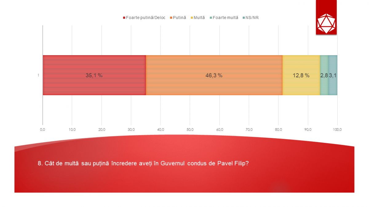 Так, 35,1% опрошенных заявили, что не доверяют или очень мало доверяют правительству Павла Филипа. О низком доверии заявили еще 46,3% опрошенных.