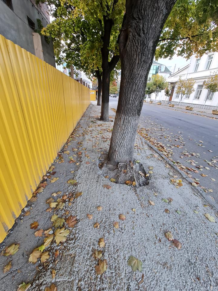 - Недавно был опубликован пост с замурованными в бетон стволами деревьев по улице Колумна. На самом деле это не на улица Колумна, а на улица Александру чел Бун между улицами Александри и Эминеску. Здесь свой проект реализует компания Inamstro. Это пример как не надо... реализовывать проекты. По улице Александру чел Бун бетонировали все, что попалось под руку - деревья, столбы, люки. Деревья естественно высохнут, так как должно оставаться открытое место возле ствола. На перекрёстке с Эминеску вообще пройти не возможно - тротуар упирается в забор и в проезжую часть. Тротуар на углу в строительном мусоре. Я сначала не понял - но какое то чувство пустоты вокруг всего комплекса... Оказалось, вообще нет деревьев. "Торчат" пару молодых (свежепосаженных) - но все равно пустота. Если посмотреть на часть улиц до этого комплекса и после него, то становится сразу понятно - везде есть деревья, а здесь их нет. Порывшись в интернете, можно найти фото и понять, что раньше возле здания бывшей прачечной были огромные деревья... А сейчас пустота, - пишет Роман Гунявый.