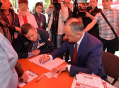 Глава государства прибыл сегодня к зданию Главпочтампта, где установлена первая палатка по сбору подписей. Сотни людей, собравшихся здесь, приветствовали президента аплодисментами, а после того, как Игорь Додон расписался в подписном листе, закричали: "Ура!".