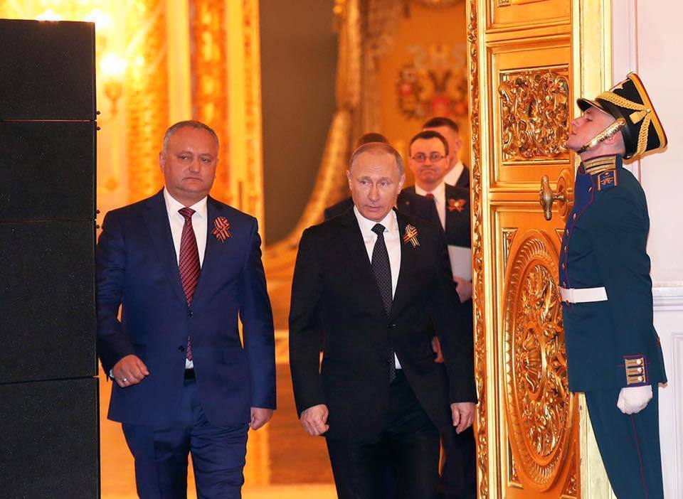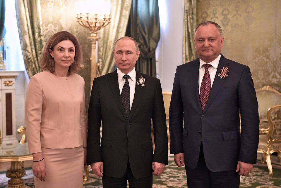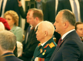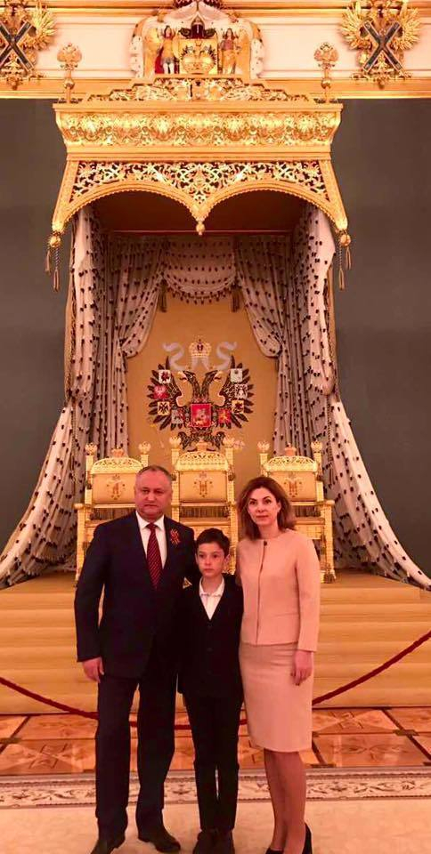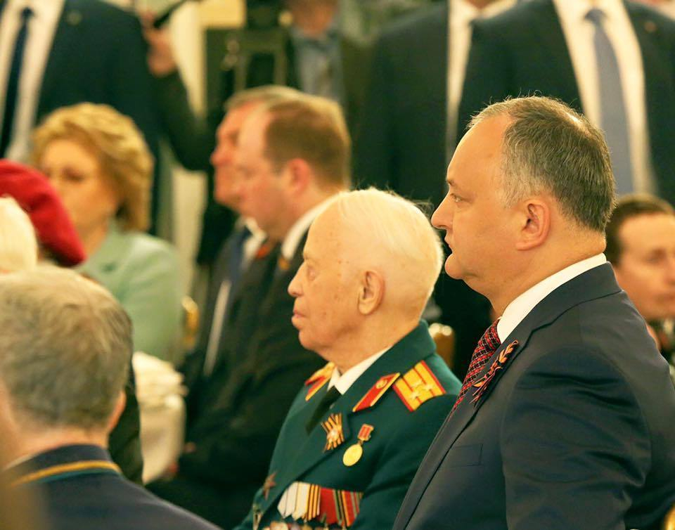 Президент Республики Молдова Игорь Додон вместе с супругой Галиной и сыном Богданом принял участие в торжественном приёме по случаю 72-й годовщины Победы в Великой Отечественной войны, который состоялся в Георгиевском зале Кремля.