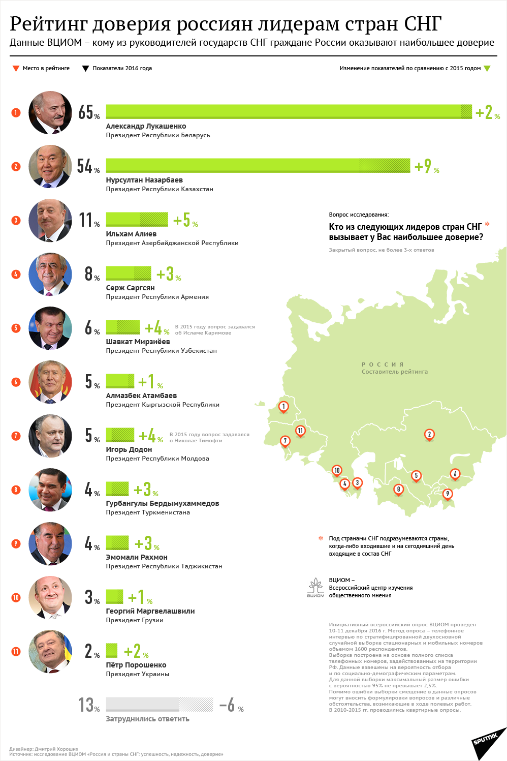 Стоит отметить, что в 2015 году россияне высказывались по уходящему главе РМ Николаю Тимофти. Новоизбранный же президент Игорь Додон продемонстрировал растущий уровень доверия, еще даже не вступив в должность официально.