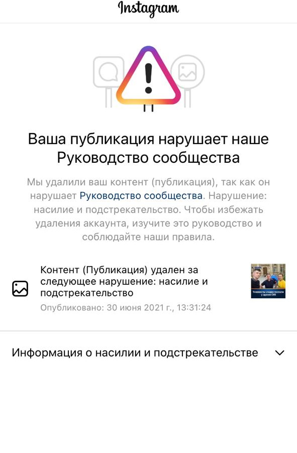 Инстаграм удаляет публикации, критикующие действия унионистов