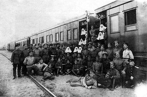 – А. М. Функ сделал групповой снимок с Есениным на переднем плане. В 1 час дня началась погрузка раненых. В 10 часов вечера поезд отправился в обратный путь по маршруту Киев-Курск-Москва-Царское Село. Восьмого июня в 7 часов утра 15 минут поезд прибыл в Окницу и оставил «9 тяжело раненных низших чинов, для которых дальнейшая перевозка была вредна». Тут Есенин мог посетить местный вокзал, красовавшийся с 1903 года. Проследовали через Могилев-Подольский и в 5 часов 30 минут вечера прибыли в Жмеринку. 9 июня в 12 часов дня поезд был в Киеве. Около 5 часов вечера поезд посетила вдовствующая императрица Мария Федоровна. Она обошла все 10 вагонов с ранеными, - описывает Кушниренко события тех лет.