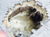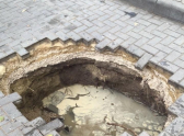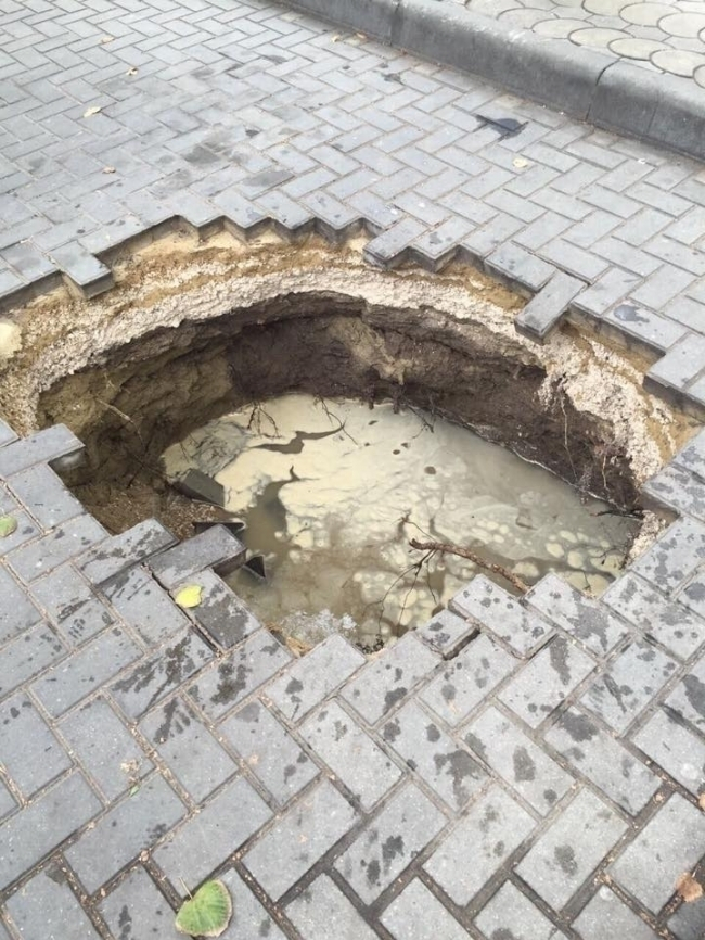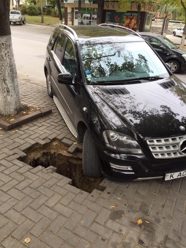 Внушительных размеров дыра образовалась на парковке под колесами автомобиля на столичной улице Дечебал.