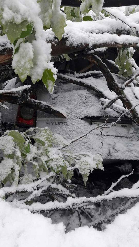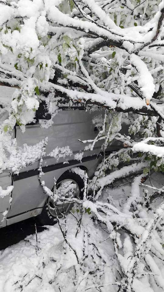 Сегодня около 9 часов утра большое дерево, вероятно тополь, упало на припаркованный автомобиль, накрыв его полностью.