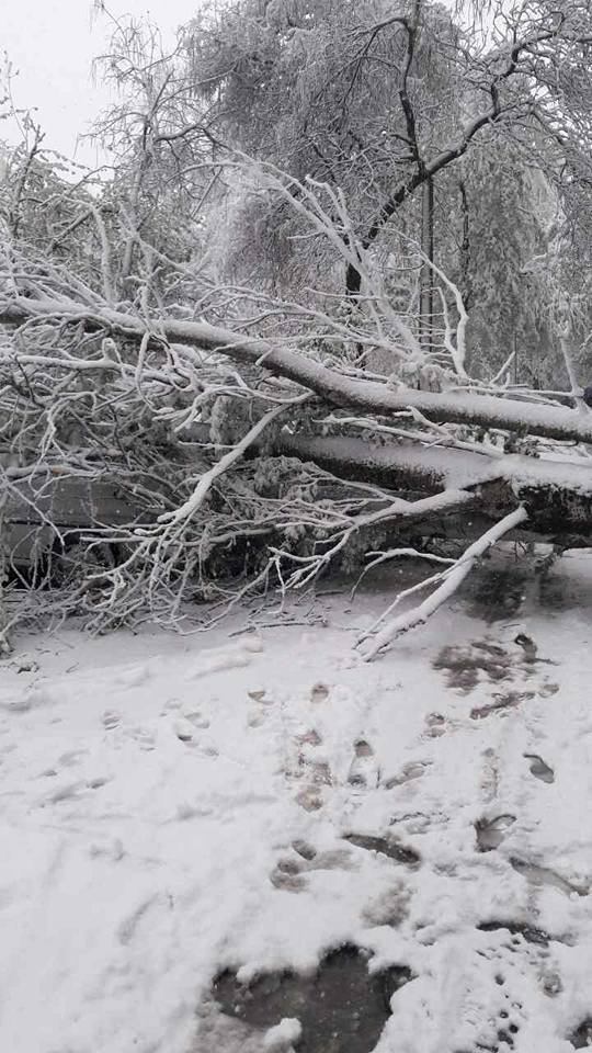 На Ботанике с утра лежит неубранным дерево, примявшее автомобиль