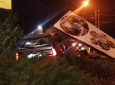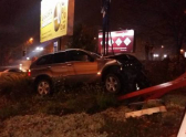 Автомобиль угодил на разделительную полосу и снес там рекламное панно.