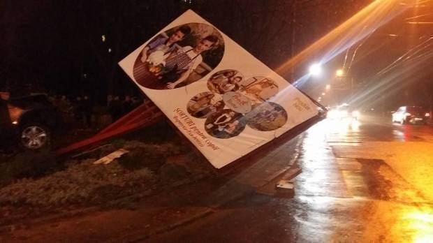 На Ботанике внедорожник BMW снес рекламное панно