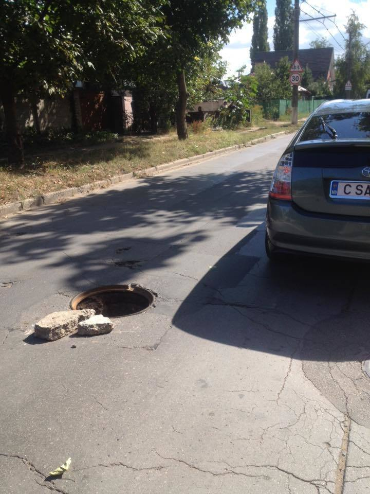 На улице Титулеску посреди дороги обнаружили канализационный люк без крышки