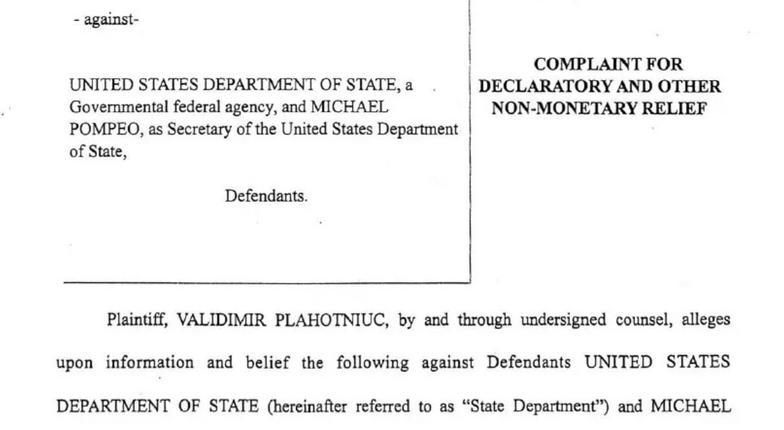 В США опубликован иск Владимира Плахотнюка к Майку Помпео.