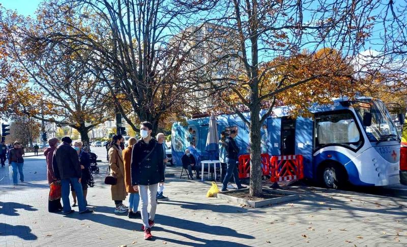 Такую картину можно наблюдать в субботу, 23 октября, на Рышкановке возле парка «Афганцев», где находится специальный троллейбус вакцинации. Об этом написал в социальных сетях генпримар Кишинева Ион Чебан.