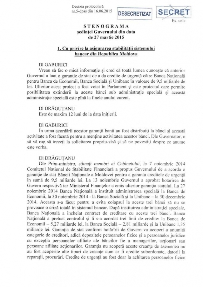 Напомним, правительство дважды выделяло деньги из Нацбанка на покрытие кражи миллиарда долларов из трех проблемных банков. Решения принимались кабинетами министров Юрия Лянкэ и Кирилла Габурича.