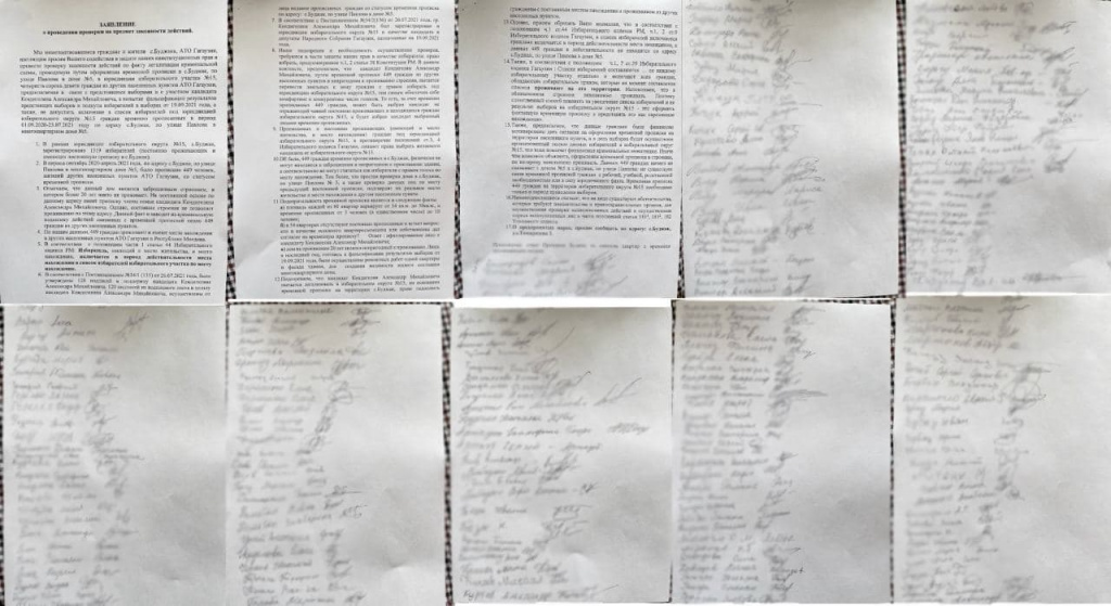 - В соответствии с Постановлением № 34/1 (135) от 26.07.2021 года, были утверждены 128 подписей в поддержку кандидата Кендигеляна Александра Михайловича. 120 подписей из подписного листа в пользу кандидата Кендигеляна Александра Михайловича осуществлены от лица недавно прописанных 500 граждан со статусом временной прописки по указанному адресу на Павлова, 5. Мы предполагаем, что кандидат Кендигелян путем временной прописки 449 граждан из других населенных пунктов в непригодном к проживанию строении пытается перевести лояльных ему избирателей под юрисдикцию избирательного округа № 15, обеспечив себе комфортное число голосов. То есть, за счет временно прописанных 449 граждан, может быть выбран кандидат, не отражающий чаяний постоянно проживающих и находящихся граждан избирательного округа № 15, — отмечают граждане.