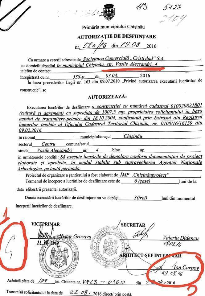 - Gaudeamus подлежит сносу. Этот... у меня нет слов, должен быть отправлен в отставку пока он окончательно не уничтожил все в этом городе. И он должен сидеть в тюрьме. Пожалуйста, авторизация на строительство, подписанная в интересах Дырды, который уже строит незаконно еще один дом через дорогу, - написал на своей странице в социальной сети председатель фракции ПСРМ в Муниципальном совете Кишинева Ион Чебан, прикрепив документ.