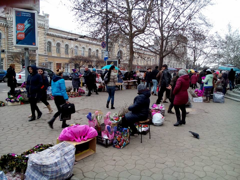 Тротуар вдоль бульвара Штефана чел Маре, прямо напротив здания примэрии превратился в рынок. Уличные торговцы марцишорами и цветами расположились там один за другим. Прохожим предлагают приобрести вазоны с цветами, вербу, марцишоры и многое другое.