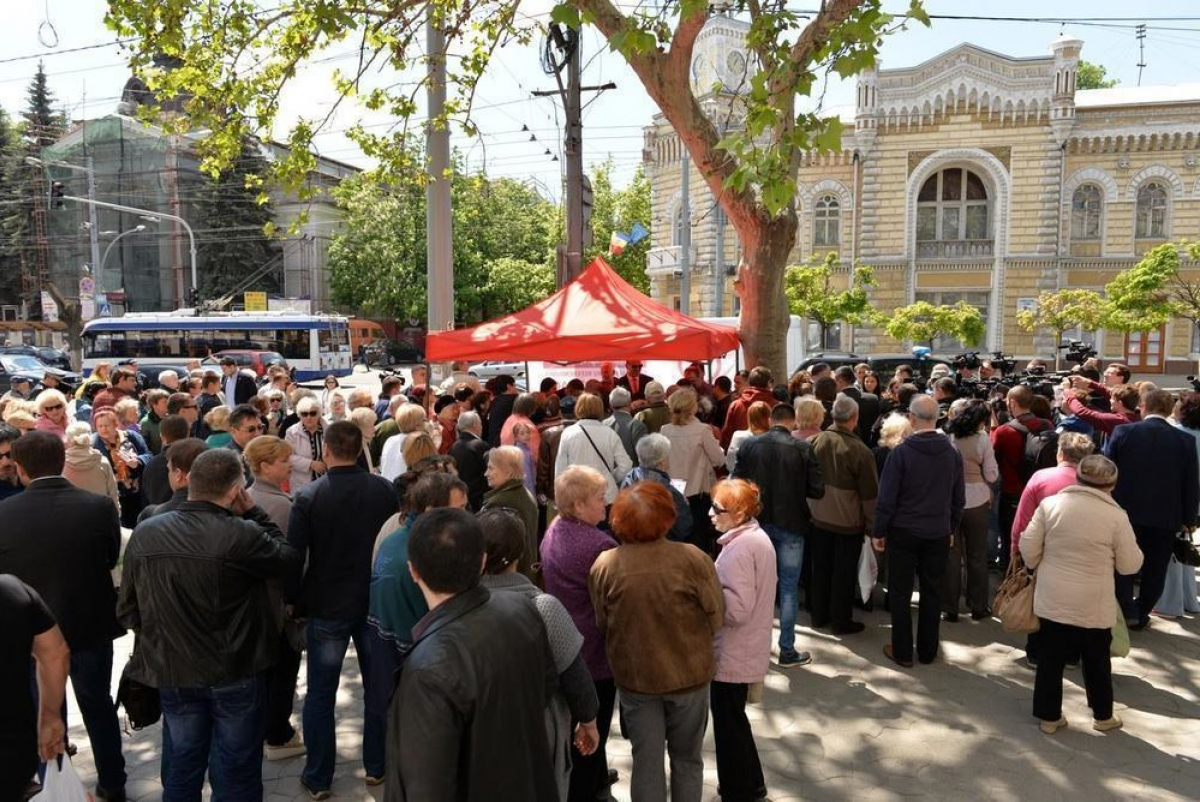 К 13.00, когда первую подпись в листах должен был поставить президент страны Игорь Додон, сотни людей окружили палатку, установленную напротив здания примэрии.