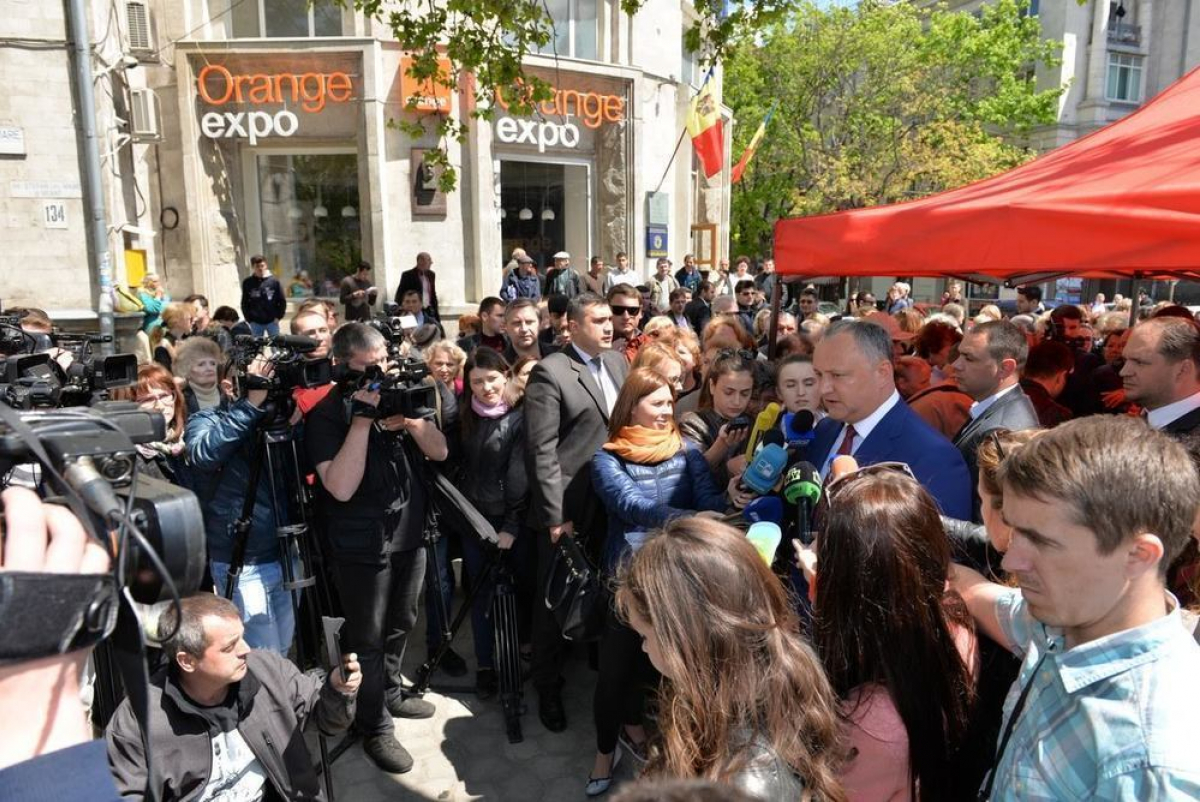 Прибывшего к палатке Игоря Додона присутствующие встретили аплодисментами и криками "Ура!".