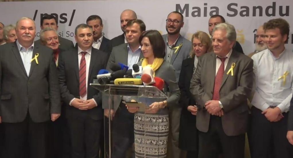 Майя Санду и ее сторонники вышли к прессе с военным символом США и украинской революции