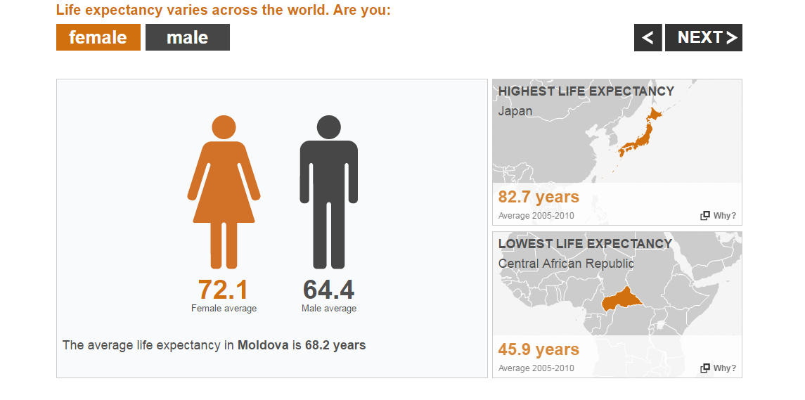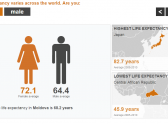 Средняя продолжительность жизни в нашей стране составляет 68,2 года, при этом, женщины, в основном, живут 72,1 года, в среднем, а мужчины - 64,4 года.