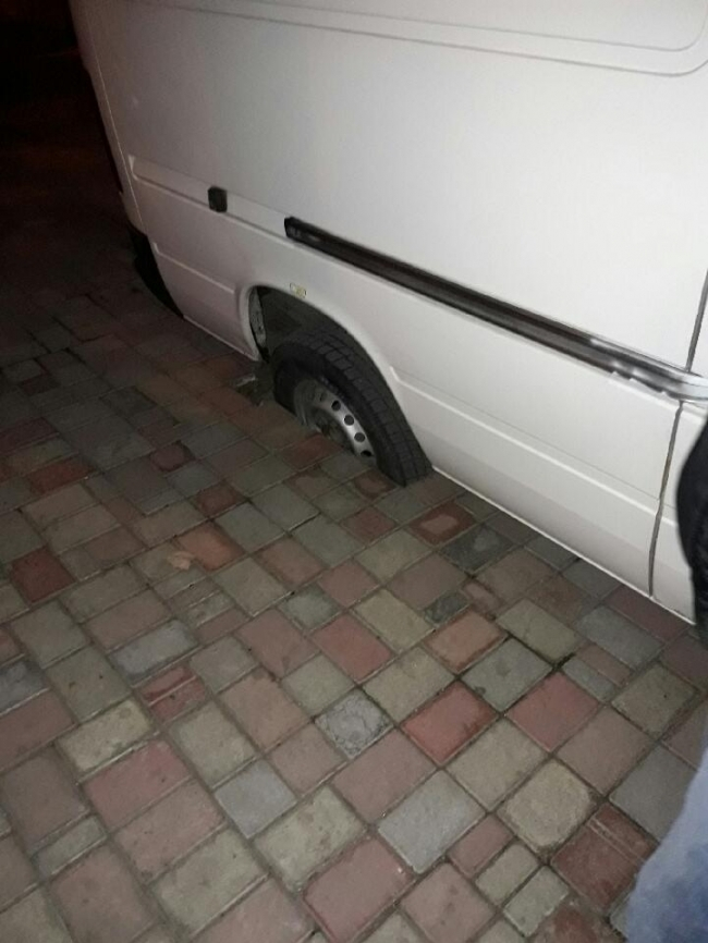 В Кишиневе под колесами микроавтобуса провалилась тротуарная плитка
