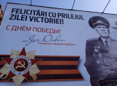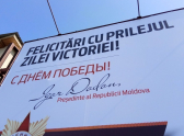 По всему городу начали появляться поздравительные плакаты по случаю предстоящего Дня Победы с подписью главы государства Игоря Додона.
