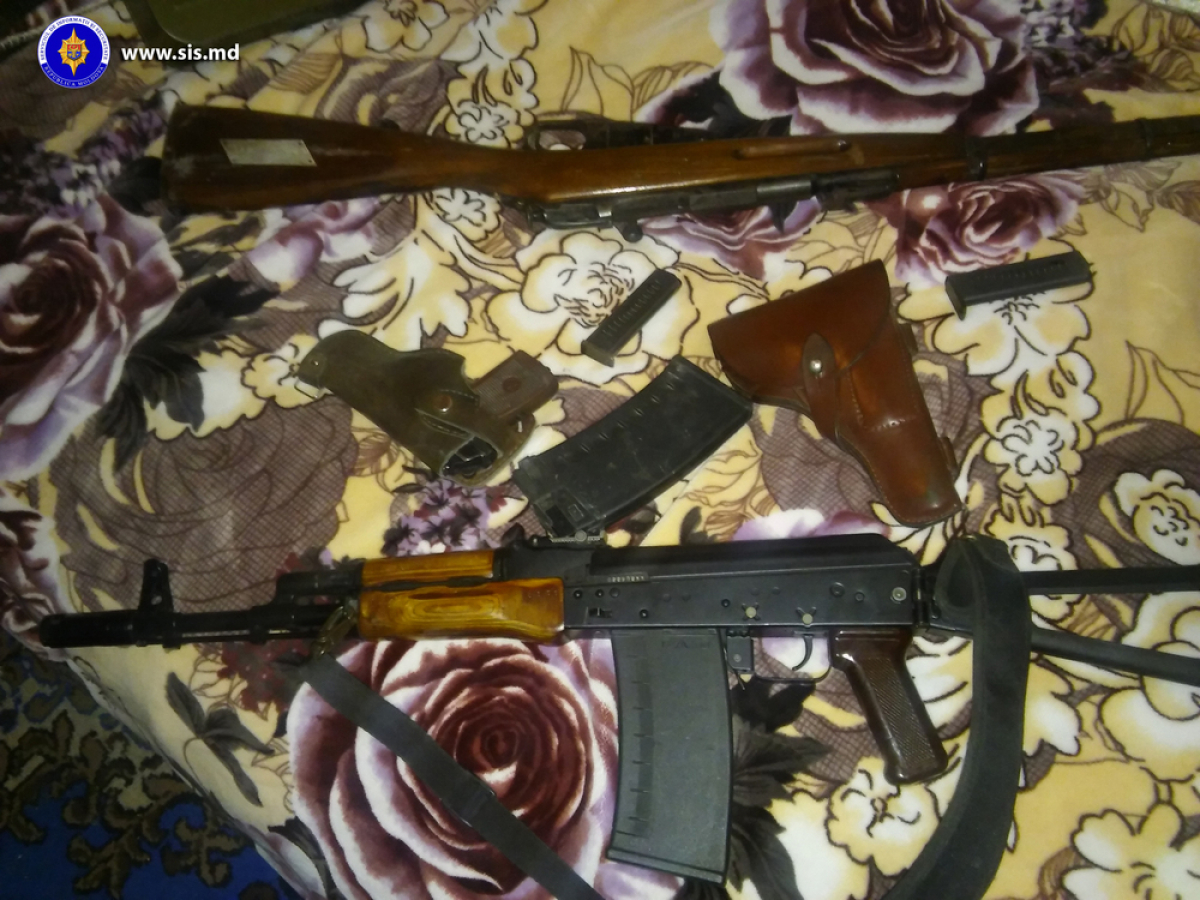 В ходе обысков у подозреваемых был обнаружен целый арсенал оружия: 2 пистолета "Байкал-442", пистолет "Парабеллум", обойма к нему с 5 патронами 9x19 мм, полуавтоматической карабин "Сайга-410K”, карабин "Mosin" и 123 патрона к нему.