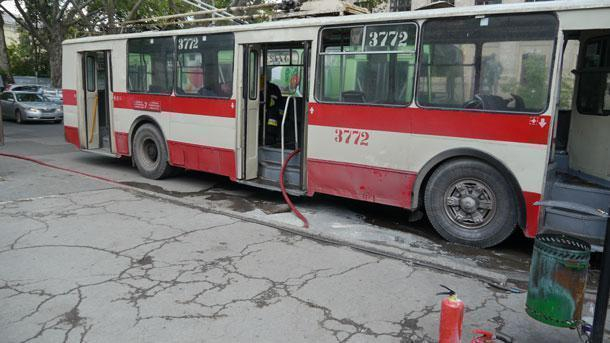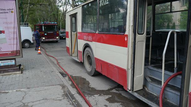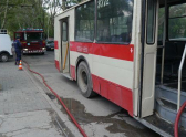 В центре Кишинева загорелся троллейбус с пассажирами