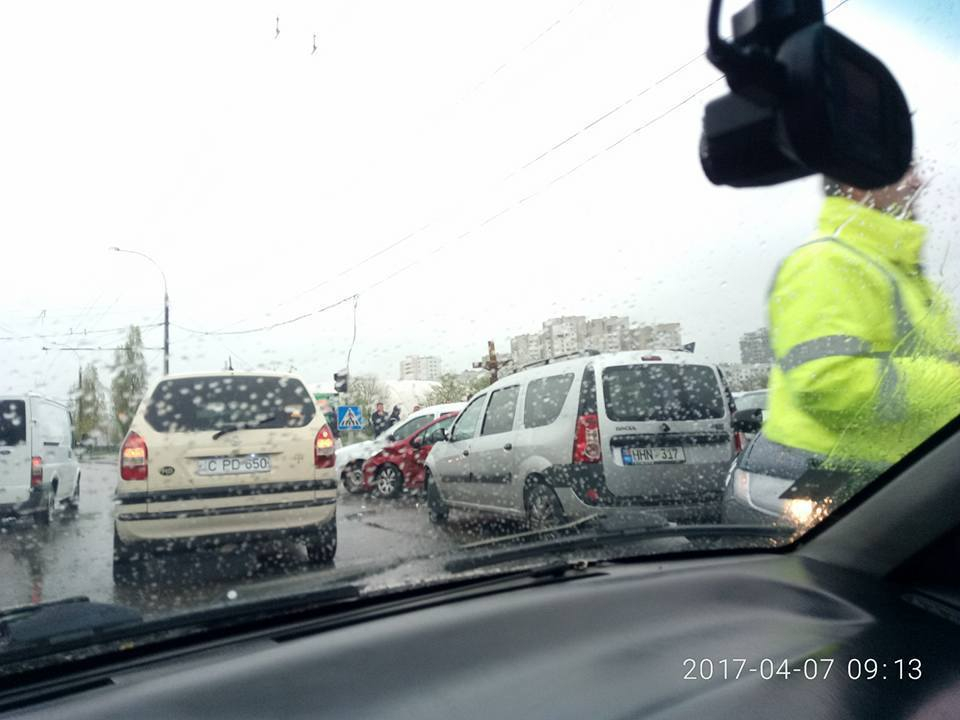 Столкновение сразу четырех автомобилей на столичной улице Михай Витязул привело к образованию гигантских пробок по всему Кишиневу.