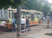 А позже в соцсети появились фотографии, на которых изображено, как горожане толкают мимо примэрии сломавшийся троллейбус.