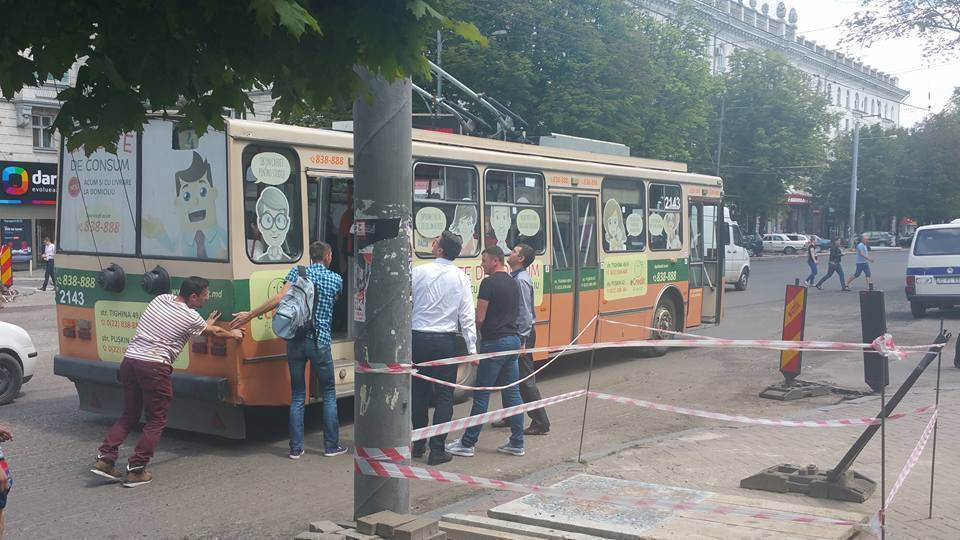 Во время доклада Киртоакэ кишиневцы толкали мимо примэрии троллейбус